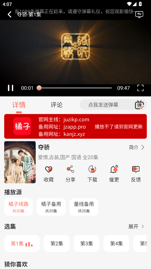 4、点击收藏按钮,橘子视频可以将自己喜欢的剧集或电影添加到“我的收藏”列表中,方便随时查看和观看。