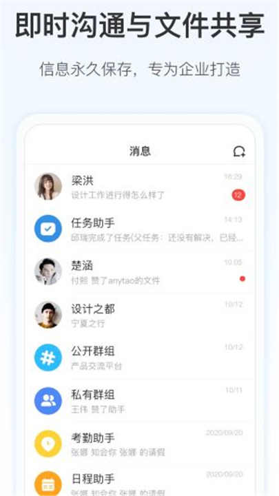 2、Worktile企业办公场所的通讯工具,具有在线保存的消息历史。