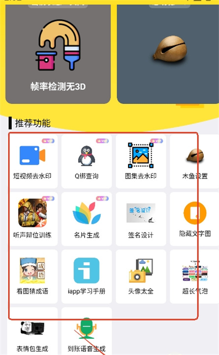 2、向下滑动浏览,还能看到美化区、广角区等板块,可以根据不同的游戏场景选择所需的游戏功能。