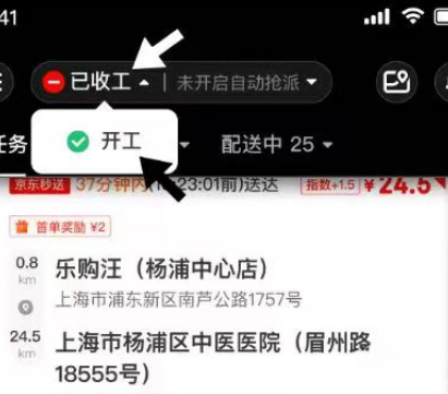 3、接着点击左上方的开工状态,并选择【开工】以开启接单模式。