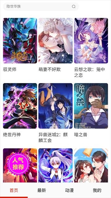 2、在首页,你可以看到一些推荐的漫画,也可以通过搜索功能找到自己喜欢的漫画。