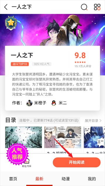 5、在页面右下角点击“开始阅读”,即可开始畅享漫画内容。