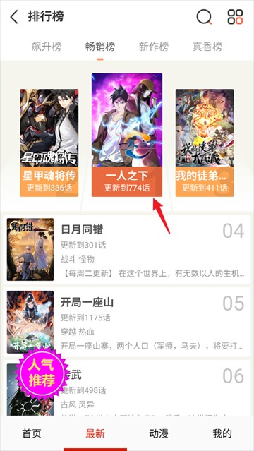 3、你还可以在最新页面,根据榜单推荐选择感兴趣的漫画。