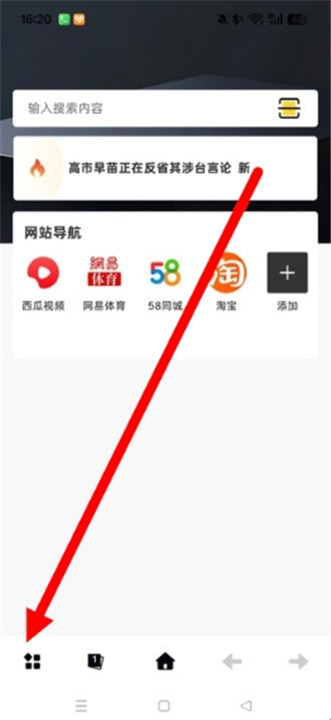 1、在本站下载安装超速浏览器软件后,打开软件并点击底部菜单栏中的图标进入相应功能;