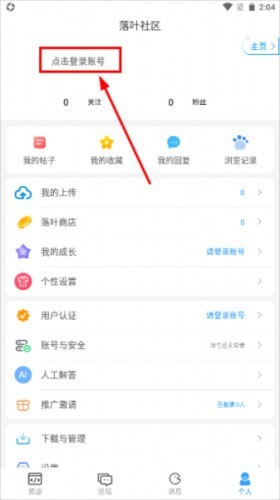 1、首先在当前页面下载安装落叶社区软件,然后打开应用,进入软件首页。