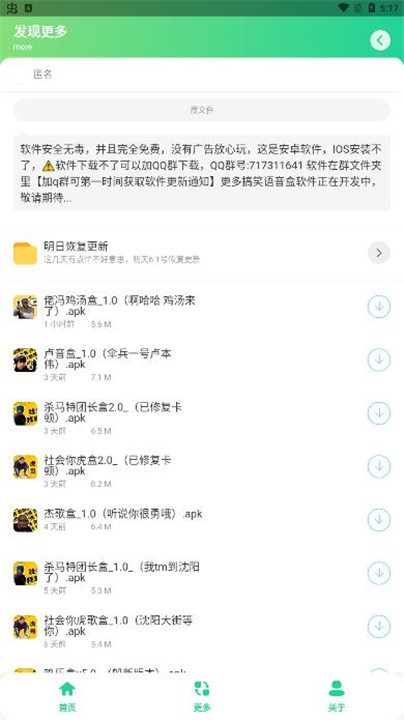 老冯鸡汤盒大量的语音包内容可以为您呈现。你可以充满信心地体验,也会不断更新,为您带来更丰富的内容和一些流行的表情符号,有许多不同的使用模式供我们选择,让我们的声音更有趣,很多种类的资源和材料可以给你带来足够的快乐,类似于ji你太美,有一些朗朗上口的说唱歌曲和舞蹈,是喜欢模仿画外音的朋友们编的。