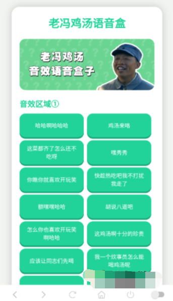 老冯鸡汤盒带来了非常有趣的整活搞笑语音包资源,我们大家熟知的名梗老冯鸡汤来了的梗图片和表情包都可以在这里找到免费用,而且还有着各种抽象好玩的语音包资源可以让我们轻松的发送到社交平台上,带来各种各样有趣的语音互动体验,而且会更新各种好用搞笑的语音包资源,操作起来也很简单轻松哦,喜欢的小伙伴欢迎点击下载下来吧。