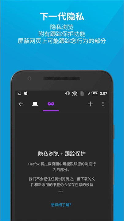 firefox带有跟踪保护的隐私浏览模式将阻止可能跟踪您浏览活动的网页部分,使用你的Firefox帐户访问历史记录,书签和打开标签从你的桌面电脑上的智能手机和平板电脑,采用更简洁和强大的用户界面,从任何设备访问浏览器的历史记录、书签、密码和打开的选项卡。