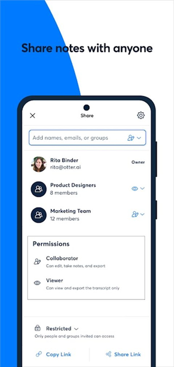 2、Otter翻译支持团队协作和翻译内容共享,实时添加字幕,并可以快速生成详细的笔记。