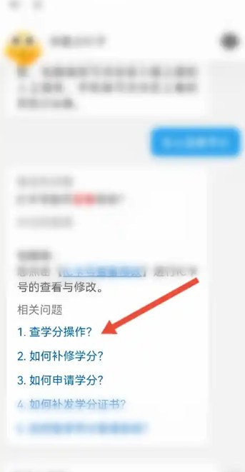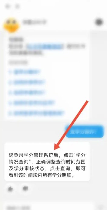3、在咨询界面中,输入“查学分”并点击“查学分”操作选项。