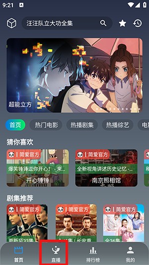 1、首先在本站下载安装简爱影视应用,打开软件后你会看到首页界面,如图所示。