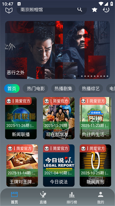 2、稍等片刻,简爱影视软件会加载并切换到电视直播界面。