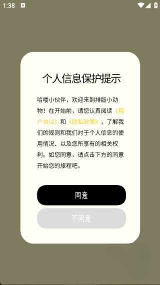 1、打开排版小动物APP,并选择同意以进入下一步操作;