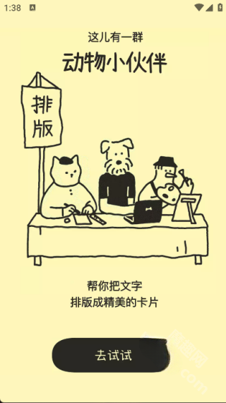 排版小动物提供了非常人性化的有趣文字排版的功能,可以根据我们用户输入的标题、内容、需求来生成各种有趣的动物小排版,通过只能的排版功能转换成各种好看的图片,还提供了智能的文字记录保存的功能,让我们所有用户都可以快速的选择适合自己的字体进行排版优化,只需要通过很少的步骤就可以快速的完成,让我们可以更加轻松的使用美化,感兴趣的小伙伴欢迎点击下载下来吧。