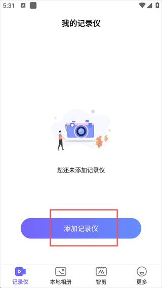 1、打开“录风者”APP,进入后点击页面上的“添加记录仪”选项。