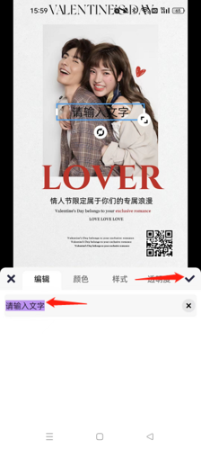 2、输入想要添加的文字内容,完成后点击“√”按钮即可确认。