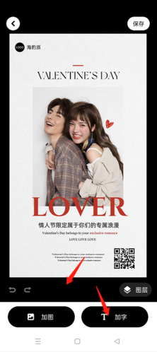 1、进入海报制作工厂编辑页面后,点击四周的空白区域,再选择“加字”选项。