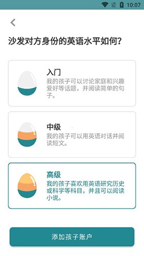 3、然后选择孩子当前的英语水平,确认后即可进入下一步。