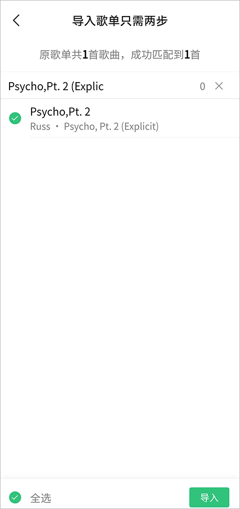 4、歌曲匹配成功后,点击右下角 “导入” 即可完成。