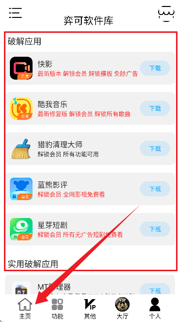 3、首页上展示了大量热门应用资源,同时还提供各种实用的破解工具,让用户能够快速发现当前最受欢迎的软件和应用。