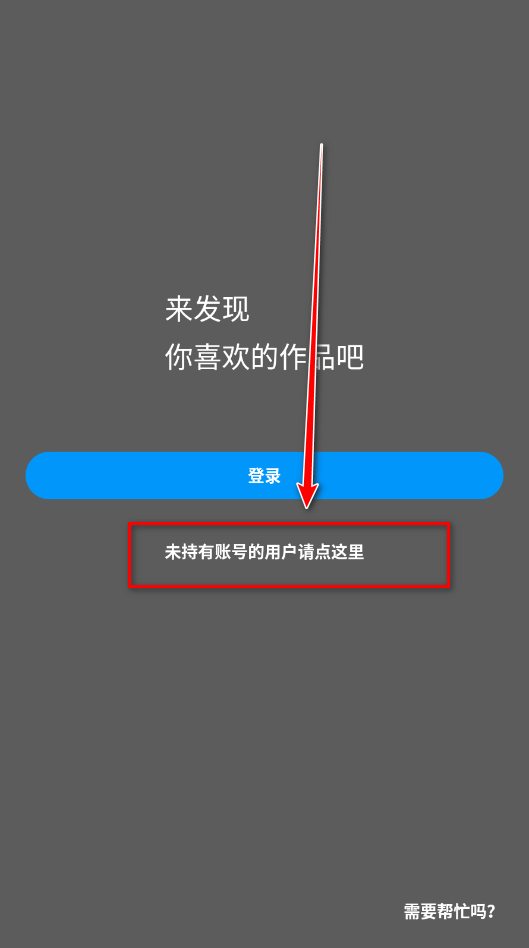 1、首先打开pixiv手机版安装,按照图示位置点击进入注册界面。