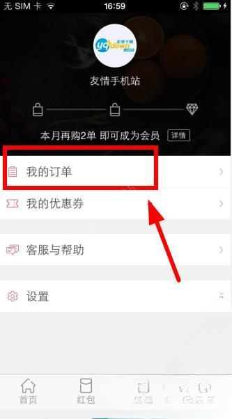 1、首先,打开每日优鲜的主页,在“我的”页面中点击箭头所指的【我的订单】入口。