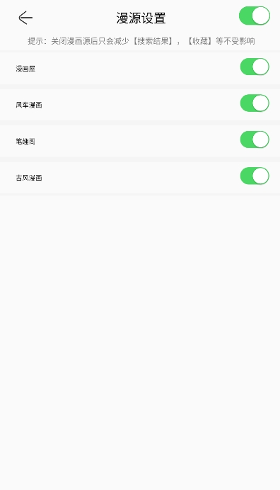 3、随后就可以根据需要,自由开启或关闭软件自带的漫画来源了。