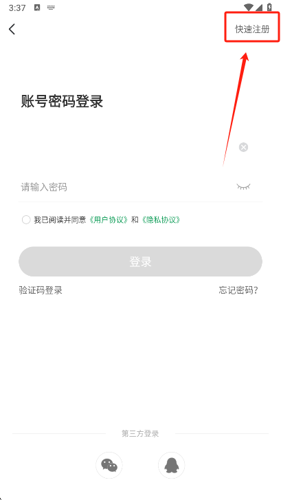 3、在跳转的页面中选择“快速注册”进行账号创建;