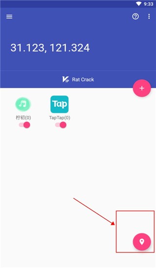此时返回首页,你会看到上方显示了该地点的经纬度,这表示位置伪装已成功启动。