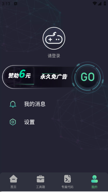 进入“我的”板块,可以登录账号,同时也可选择赞助6元以永久免广告,还能查看我的消息以及进行各类设置操作,实现个性化体验。