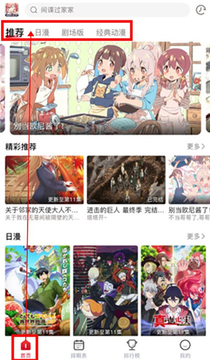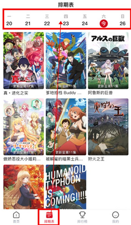3、进入【排期表】页面,可以查看当天更新的动漫,确保不会错过任何最新番剧。