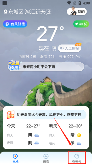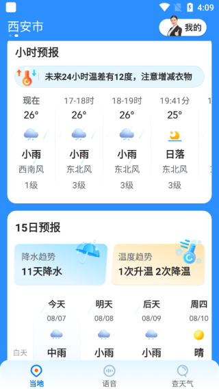 3、内置语音广播模式,可以在上下班或开车时只需点击一下就能听到天气预报,而不必盯着屏幕。
