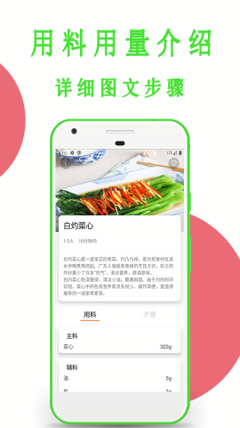 2、一键收藏心仪食谱,随时快速调用,让用户可以更好的做菜。