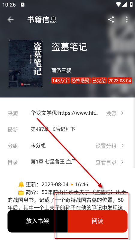 2、在书籍详情页点击“立即阅读”按钮,就可以直接进入小说的阅读界面。