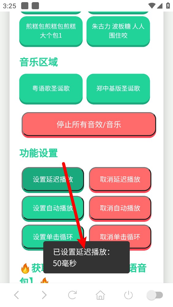 5、设置完成后,点击任意音效播放时都会按照设定的延迟时长进行播放哦。