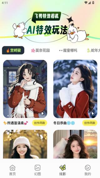 1、飞鸭特效相机平台使用户能够生成自己的3D动画角色并查看他们的想象力。