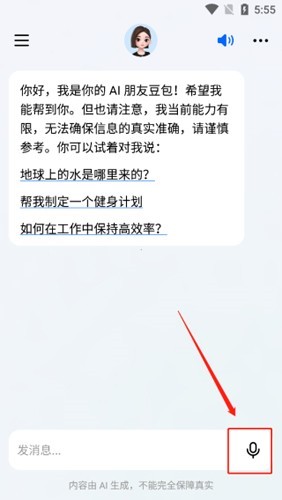 3、登录成功后,你可以直接在下方的语音输入框与豆包开始聊天;