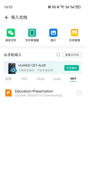 2、开启文件获取权限后,系统即可自动识别并导入你设备中已下载的文档(也支持从微信中导入)。