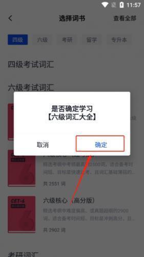 2、根据自己的需求,选择并点击所需的选项,例如“六级词汇大全”。