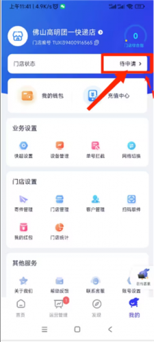 5、接下来,在【我的】界面查看门店状态,选择【待申请】选项。