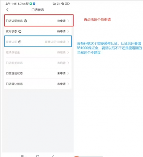 6、进入【门店状态】界面,再次选择【待申请】选项以继续操作。