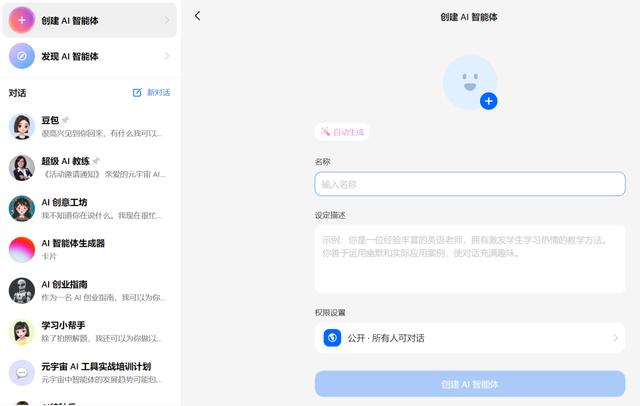 确认是否公开你的智能体,如果选择公开,那么所有人都可以与您的AI角色进行对话。当然,公开能够让你展示自己,同时你依然可以保持隐私不被泄露。