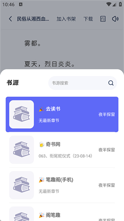 4、软件内提供了非常丰富的书源,可以挑选合适的书源进行阅读;
