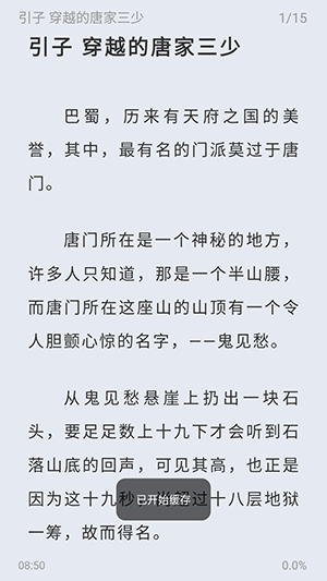 3、界面上会显示缓存开始的进度;