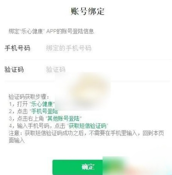 2、输入你在乐心健康APP注册登录的手机号码和验证码(获取验证码的方法:打开乐心健康APP,退出登录后重新登录,获取验证码。注意三分钟内生成的验证码可以重复使用)。
