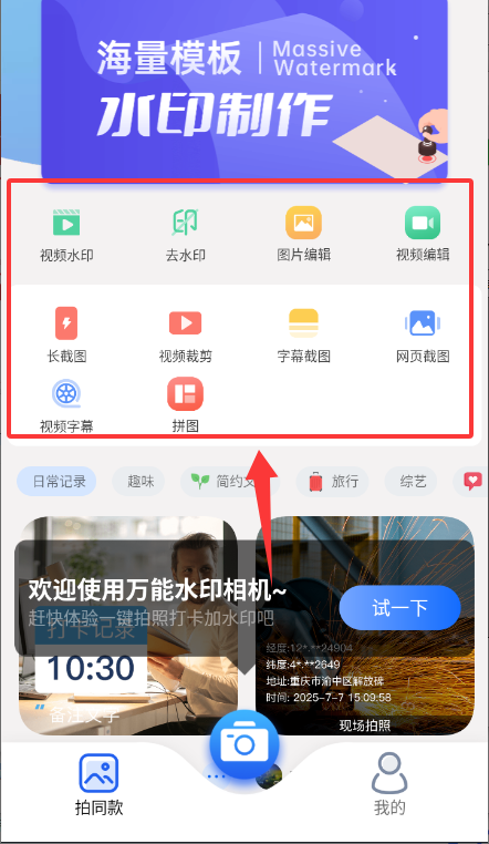 万能水印相机修改时间自动定位您的当前位置并留下照片足迹,提供大量水印模板,各种水印风格各异,每种都好看,时间水印,自动判断当前时间,可以详细精确到年、月、日,天气水印,可以获取当天当地天气预报,添加天气预报水印。
