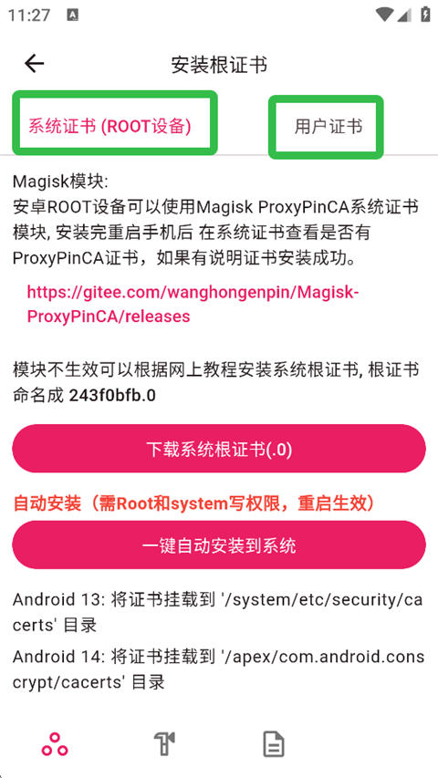 3、接下来点击【安装根证书】进行下一步操作。