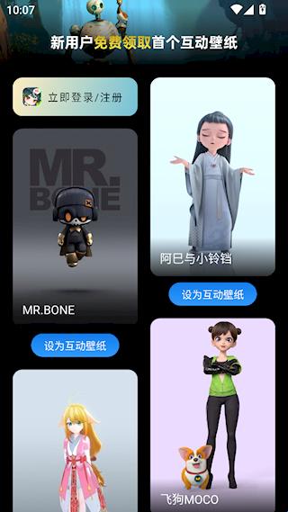 1、打开次元互动壁纸应用程序后,您可以看到各种图像,然后单击将其设置为交互式壁纸。