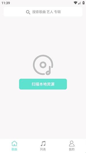 1、在小白免费音乐播放器最新版软件获得本地权限授权后,它会自动开始扫描设备中的音乐文件。