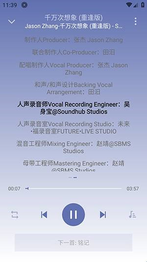 3、点击下方的播放器界面,可以查看歌词以及其他相关信息。